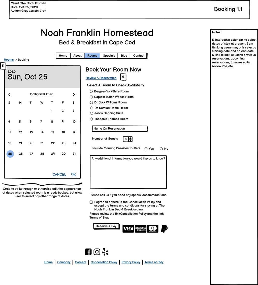 - Design a website for a fake client, The Noah Franklin Homestead Bed & Breakfast in Provincetown, Massachusetts